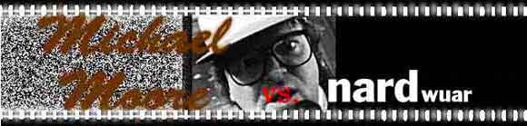 I won't let you down. I promise, I promise, I promise, I promise. (hugs Nardwuar) I won't let you down. I won't do it! Did you know that Mark Farner of Grand Funk Railroad has a dog named after him? Mark Farner is, like, supporting the Michigan Militia right now. I mean it's like pretty scary stuff. And finally, Michael Moore, we'd like to thank you, here in Vancouver, British Columbia, Canada. You've inspired people. Like TV Nation. TV Nation you had the thing about the car alarms, where you played the car alarms outside of the guy's house. Yeah, that was cool. And people in Vancouver, while the Molson Indy was happening in Vancouver, played Indy sounds outside of the Mayor's house, to tell him how bad it was with the noise. Oh (laughs), really? Oww, that's so cool. Thank you so much for the inspiring... The inspiration. (laughs) Thank you so much for inspiring people. And now, I must go meet the Magnificent Ambersons, thank you. Thank you, so much, Michael Moore, now going to a Fox broadcast. Keep on rocking in a free world, and... Fox are milking you now, they better take your show, is your show going to be on, just quickly, yes or no? Yes, TV Nation will be on. So Fox has picked it up. Noooo, the BBC have put up the money for a whole new season. Are we going to be seeing it on the Fox? You're going to see it here on CTV. Why won't we see it on the Fox? You're doing that press conference for them. Are you an American or a Canadian? They're manipulating you. Are you an American or a Canadian? They're manipulating you. What are you? An American or Canadian? I love both nations. Which are you? I'm an anti-fascist. What are you? An American or Canadian? I'm an anti-fascist. I am a Canadian, born July 5, 1968. |