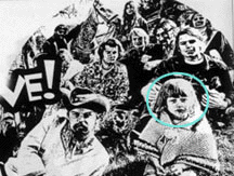 is me on the back cover of Aoxomoxoa.. Guess which one I am. I'm the one that doesn't like the Grateful Dead.There! (pointing ) It's me! Where's my father?(pointing) See my father. No, right back there. There he is. Gross fat daddy.